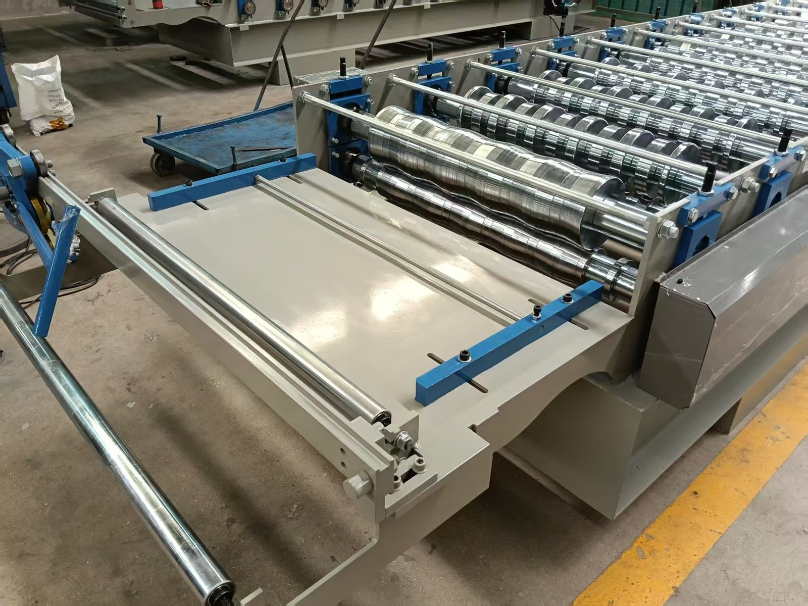 This equipment demonstrates exceptional flexibility in raw material adaptation. The R101 model is compatible with a 1220mm feed width, while the R72 model is compatible with a 914mm feed width. Production can be switched simply by changing the raw material width, without adjusting the equipment structure. Regarding panel thickness, it can process raw materials from 0.3-0.7mm (i.e., gauge 23-30), again meeting different thickness requirements without changing the equipment. Furthermore, the equipment is compatible with materials with yield strengths of 235Mpa-550Mpa and can produce trapezoidal panels of any length, fully adapting to diverse construction needs.